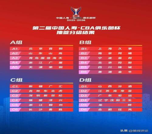 北京时间10月17日,根据CBA官方的公示了第二届CBA俱乐部杯小组赛分组抽签结果。